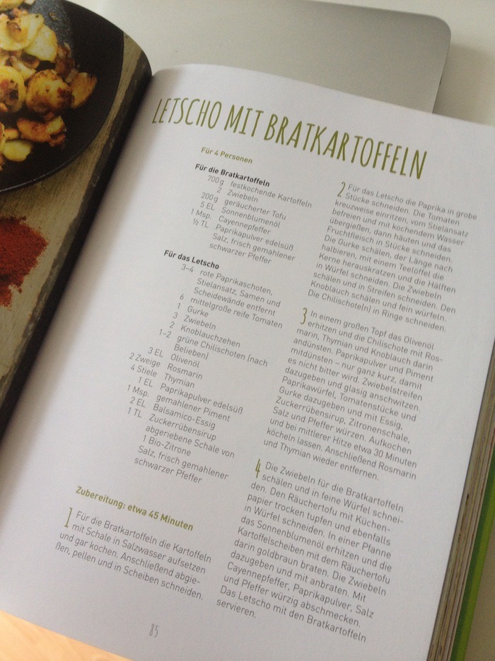 Eine tolle Auswahl an Rezepten, die ich hier nur ansatzweise wiedergegeben habe. Anschließend gibt es noch einige Grundrezepte, z.B. für Mayo, Quark, Saucen für alle Gelegenheiten und ein paar Tipps, was im Vorratsschrank verfügbar sein sollte und woher man das bekommt. Außerdem: Wie ersetze ich tierische Produkte? Rundet das ganze richtig gut ab.