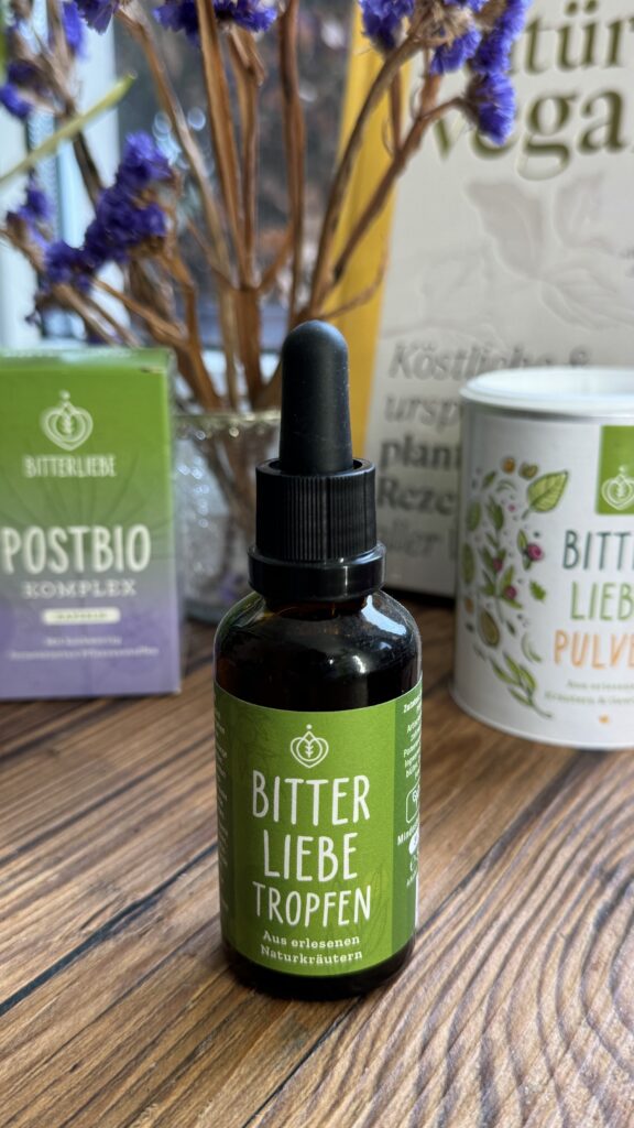 Auch Bitterkräuter-Tropfen können eine praktische Ergänzung sein, insbesondere wenn der Alltag wenig Raum für bitterstoffreiche Lebensmittel lässt.