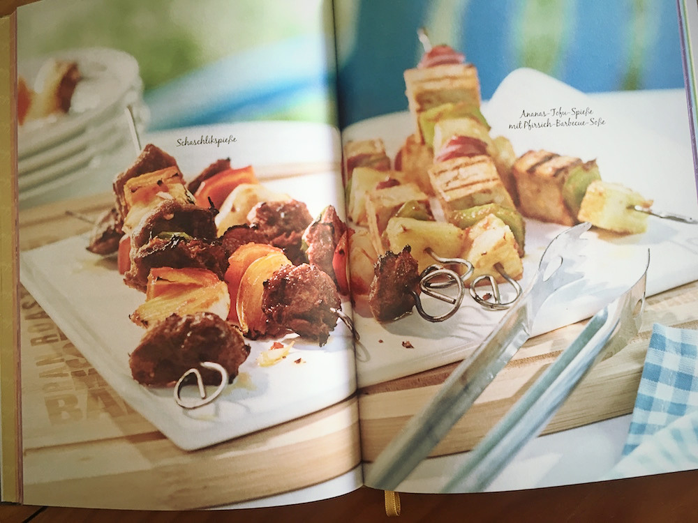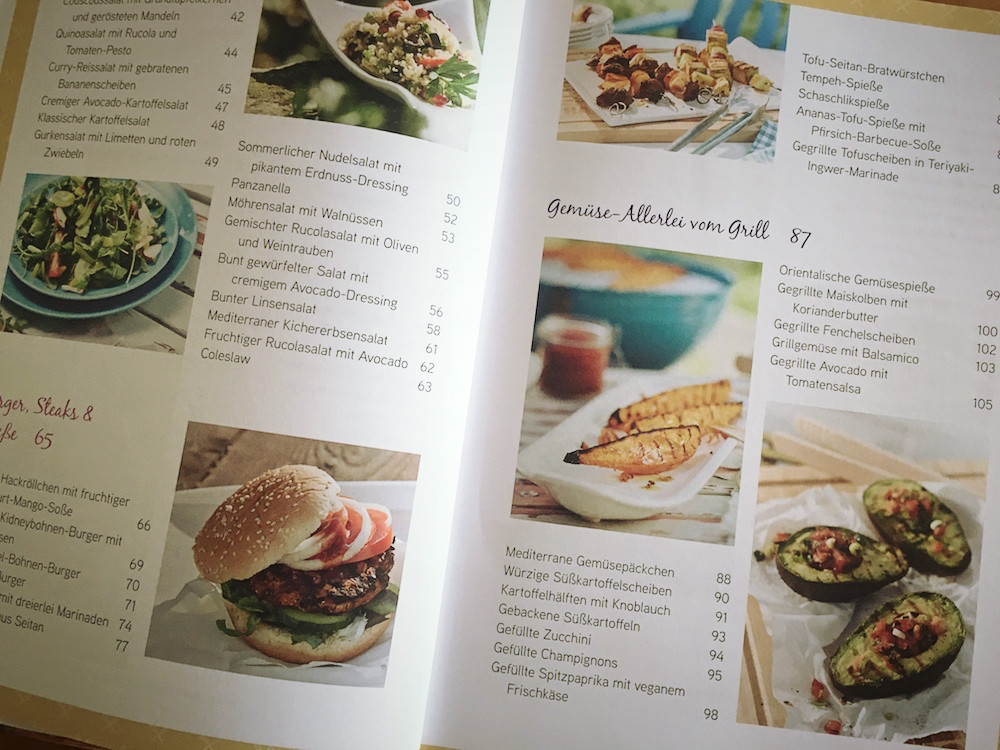 „Grill vegan!“ ist ein wirklich schönes Standardbuch für alle veganen Grill-Freunde, das keine Wünsche offen lässt. Die Gestaltung des 144 Seiten starken Buches ist recht klassisch und übersichtlich, es ist zudem reichlich bebildert mit hübschen Fotos. Ich finde es rundum gelungen, und glaube, dass man mit den Rezepten so manchen nicht-veganen Grillfreund so richtig schön neidisch machen kann. Aber wir wissen ja: Mit gutem Essen lässt es sich am besten überzeugen, daher darf man ruhig mal was Kreatives auffahren, anstatt einfach nur ein Packung Tofu-Würste zu öffnen. Letzteres sorgt nämlich zumeist eher nur für mitleidige Blicke. Dass es anders geht, zeigt Michaela Marmulla in „Grill vegan!“! Weitere Infos findest du hier. Eine Leseprobe gibt es hier. Auch erhältlich bei Amazon.