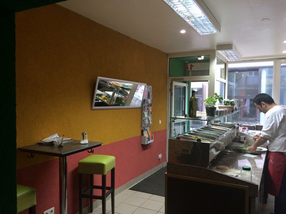 Betrieben wird das Che-Ma vom Betreiber des LoLu, so verwundert es auch nicht weiter, dass die beiden Läden gleich nebeneinander liegen in einer Seitenstrasse der Duisburger Fußgängerzone Königstrasse. Das LoLu gibt es seit ca. 2 Jahren, und es läuft übrigens inzwischen richtig gut. Während es im LoLu eine arabisch angehauchte Küche gibt, bietet das Che-Ma italienische und türkische Gerichte.
