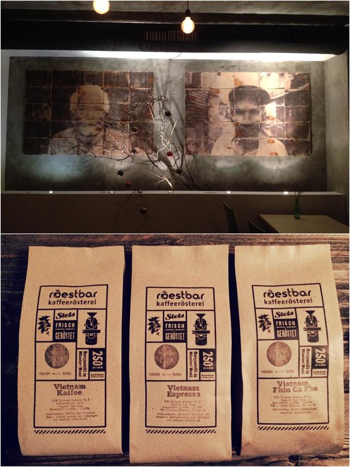 Und auch bei den Getränken hat sich das Royals&Rice nicht beirren lassen. Besonders die tollen Winter-Tees sind hervorzuheben: Granatapfel-Minz-Tee und der Mandarinen-Mandel-Glühwein. Außerdem finden sich auf der Karte lokale Spirituosen, wie Held Vodka oder Holunderblütenlikör aus der Preussische Spirituosen Manufaktur. Der Kaffee, auf den hier besonders großen Wert gelegt wird, kommt entweder von Bonanza Coffee oder aus der roestbar Kaffeerösterei in Münster. Letztere importieren Bohnen aus Vietnam und mahlen diese in Münster, wo auch das erste Royals&Rice vor 3 Jahren eröffnete. Durch den direkten Kontakt nach Vietnam von Familienseite her wird sichergestellt, dass bei dem Kauf einer 250g Packung Kaffeebohnen im Restaurant rund 20% direkt an die Bauern und die Familien in den Kaffeeanbaugebieten gehen.