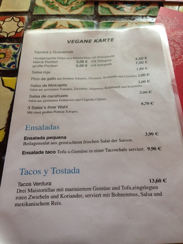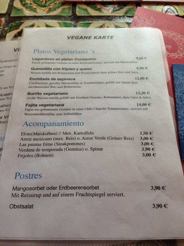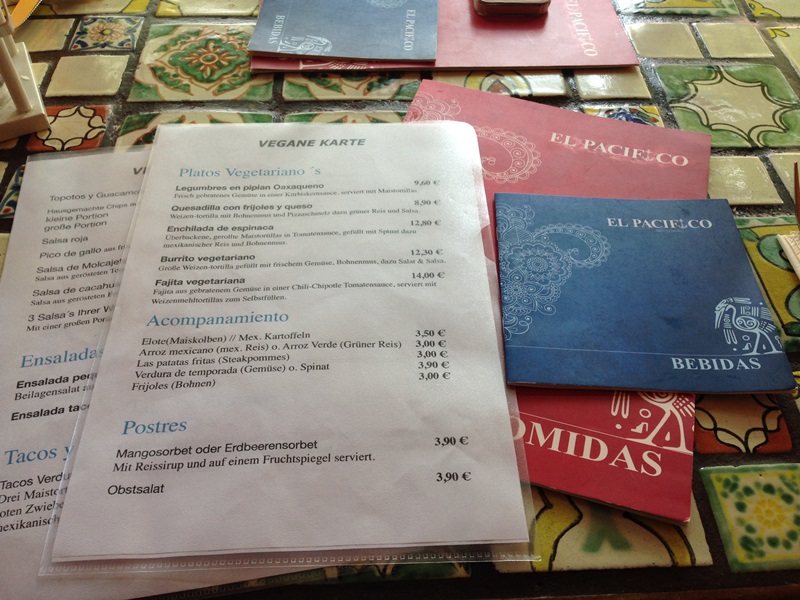 Katrin von beVegt hat mich nun vor Kurzem gefragt, ob wir uns nicht mal wieder in Frankfurt treffen wollen und mir das El Pacifico als Treffpunkt vorgeschlagen. Katrin hat hier auf Deutschland is(s)t vegan schon ein paar Gastbeiträge veröffentlicht und auch auf meinem Blog „V“eltenbummler – Vegan verreisen war sie schon zu Gast. Gerne haben mein Mann und ich zugesagt. Vor allem, nachdem ich gehört habe, dass das El Pacifico seit Kurzem eine eigene vegane Karte hat.
