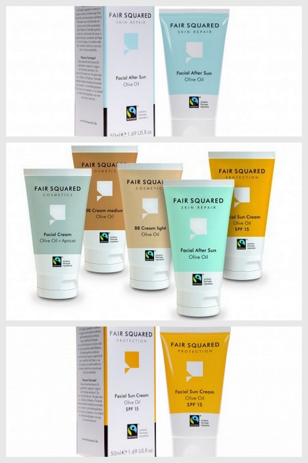 Seit kurzer Zeit bietet Fair Squared die ersten Kosmetikprodukte an, die ebenfalls Fair Trade Siegel tragen und wovon die meisten in Deutschland produziert sind. Bei der Herstellung wird auf schädliche Zusatzstoffe verzichtet und die Produkte oder deren Rohstoffe sind nicht an Tieren getestet worden. Für das Verpackungsmaterial werden – soweit möglich – recycelte, recycelbare oder kompostierbare Materialien eingesetzt.