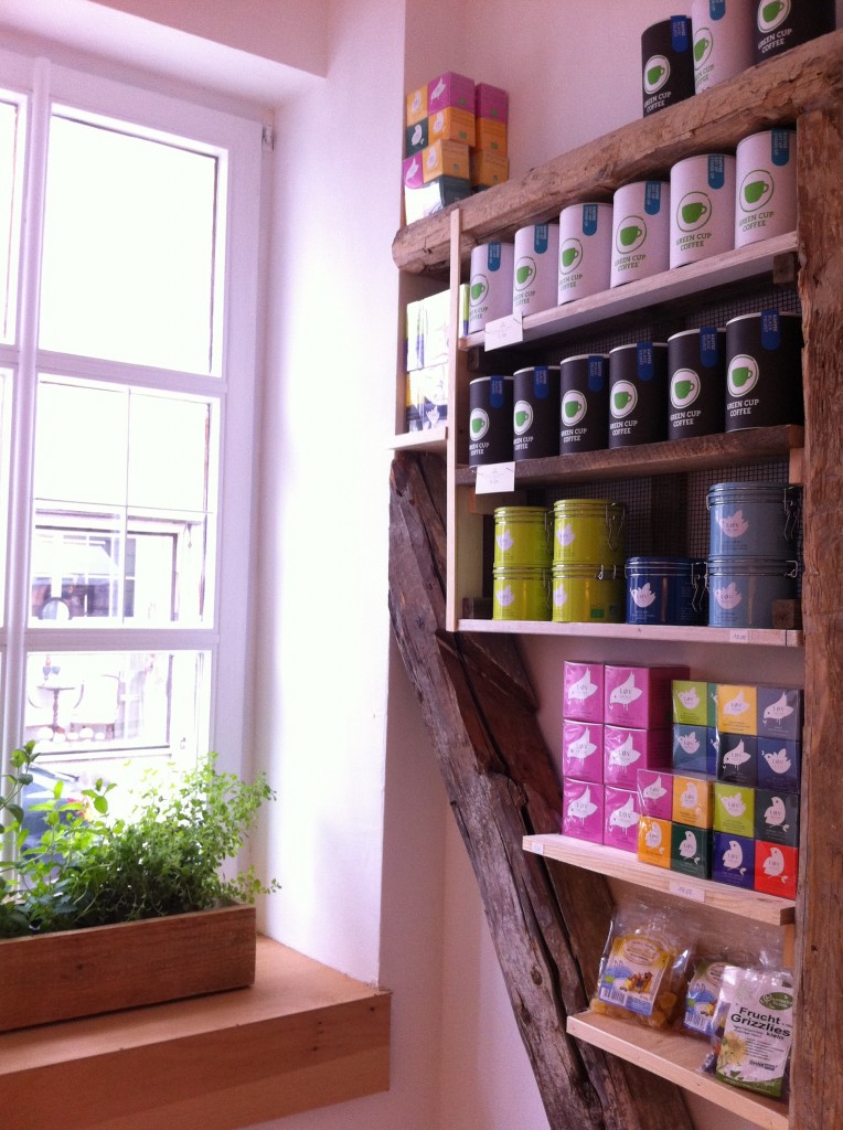 Die Caféspezialitäten (bio und fair!) kann man natürlich mit Soyamilch bestellen und das i-Tüpfelchen ist: meine Lieblingsteesorte wird serviert und verkauft!