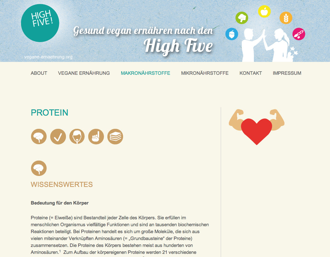 Die Idee für eine umfassende Informationsseite zur veganen Ernährung ergab sich für mich daraus, dass im deutschsprachigen Raum keine solche Seite existierte und verlässliche Infos zur veganen Ernährung rar und bloß vereinzelt auf Blogs und Websites zu finden waren. Zudem kursieren nach wie vor einfach viel zu viele Fehlinformationen im Netz. Vegan-Neulinge können da meist nicht die Spreu vom Weizen trennen und verlassen sich häufig auf diese Fehlinformationen. Die Folge: Es entstehen falsche Erwartungen, die Halb- oder Unwahrheiten werden weitergegeben, die Ernährung wird suboptimal zusammengestellt und irgendwann kommt die Enttäuschung, weil man sich nicht wohl fühlt und erfährt, dass vieles nicht gestimmt hat, an das man geglaubt hat. Im schlimmsten Fall wird dann der Schluss gezogen, dass vegane Ernährung nicht funktioniert und es wird zurück zu vegetarisch oder omnivor gewechselt (und das nicht-vegane Umfeld fühlt sich noch bestätigt in der Annahme, dass vegan doch nicht funktionieren kann). Dem will High Five Vegan mit voller Kraft vorbeugen, indem Infos und Tipps bereitgestellt werden, auf die man sich verlassen kann, weil sie wissenschaftlich fundiert und in der Praxis bewährt sind. Unfehlbar ist High Five Vegan zwar auch nicht, aber der Anspruch ist definitiv hoch.