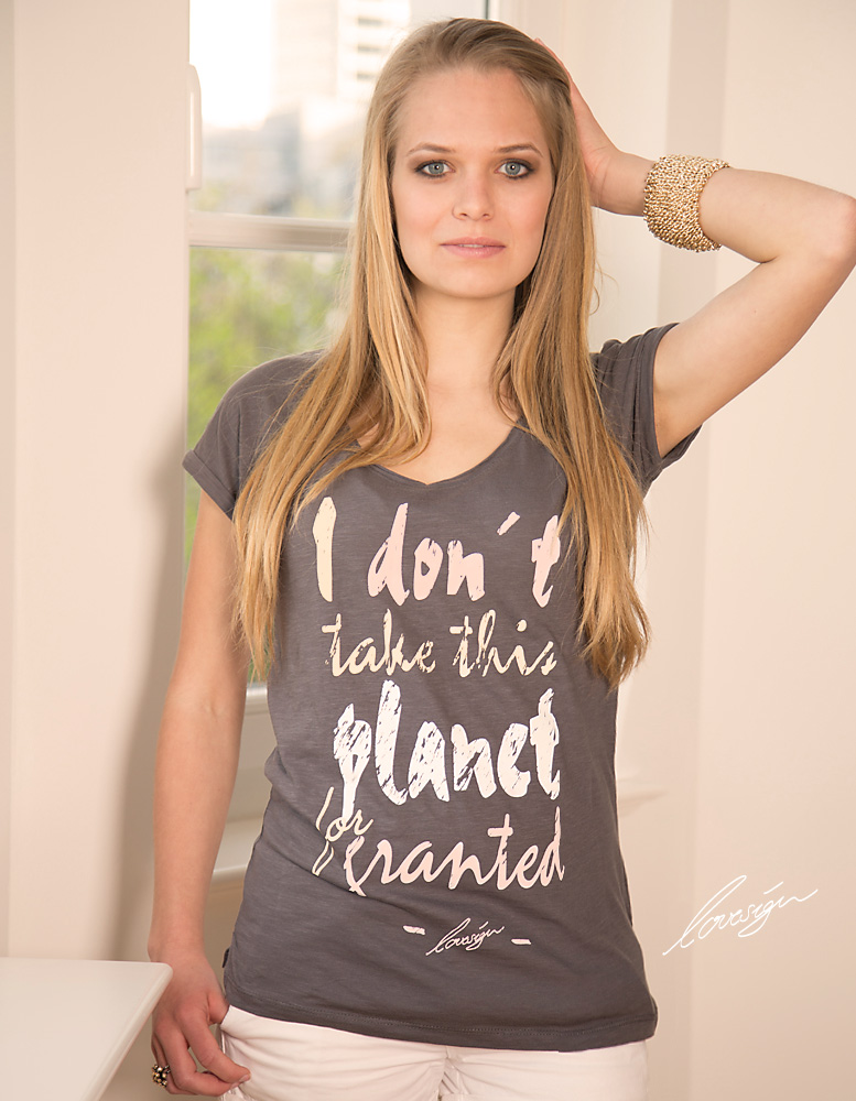 Ja, besonders hat mich die Weltklimakonferenz bewegt. Eigentlich nicht die Konferenz an sich, sondern eher dass keiner vom größten Auslöser des Klimawandels gesprochen hat. Ich verstehe nicht, warum keiner darüber spricht, wie wir den Verbrauch an tierischen Produkten eingrenzen können, da sie zum größten Teil unser Klima zerstören. Da mir fehlt, dass vegan mit unserem Planeten in Verbindung gebracht wird, heißt eine unserer neuen Collectionen „passion for planet“. Eine Inspirationsquelle dazu war Leonardo di Caprio. Er hat mich mit seiner Oscarrede im Januar positiv beeindruckt. Er hat sie genutzt um auf den Klimawandel und Welthunger aufmerksam zu machen. Daher kommt eines unserer Statements – i don´t take this planet for granted!