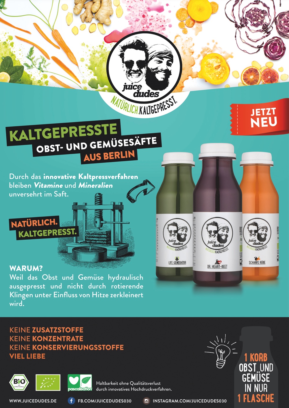 Alle weiteren Infos und Bestellmöglichkeiten findest du auf der Internetseite der Juice Dudes. Auch bei Facebook und Instagram sind die Juice Dudes zu finden.