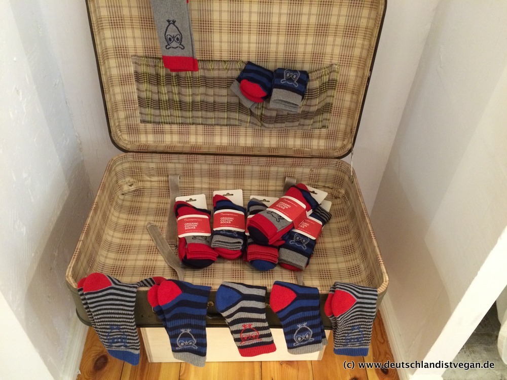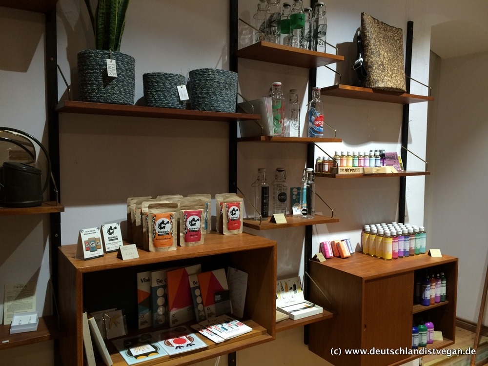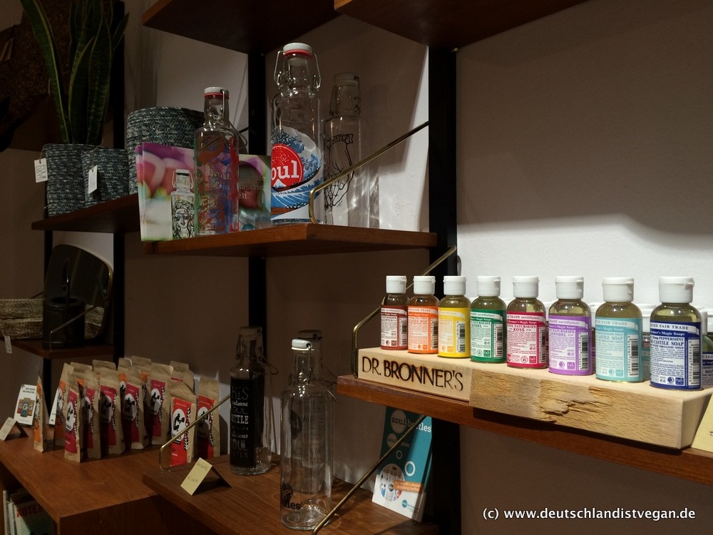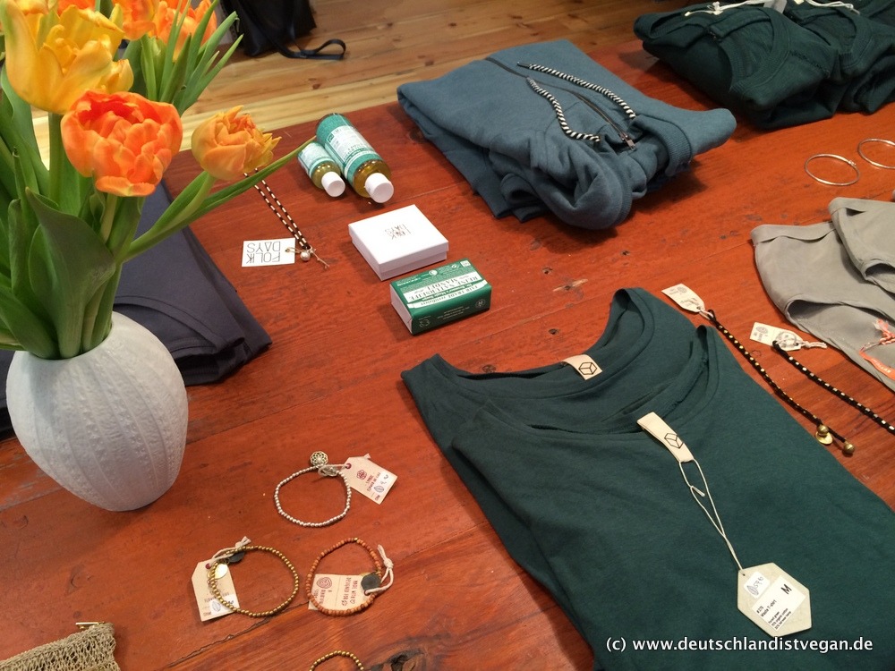 Natürlich sind die angebotenen Klamotten nicht weniger wichtig, und auch hier beweist Christina ein gutes Näschen. Das Angebot ist groß und vielfältig mit Labels wie Armed Angels, Recolution, Monkey Genes, Minga Berlin, Wunderwerk, Hoodlamb und viele weitere zeigen, wie schön und tragbar ökofairvegane Mode ist. Außerdem findet ihr tolle Accessoires (z.B. von Matt & Nat) und schöne Sachen wie die Lovebottles oder die tollen Seifen von Dr. Bronner. Und vieles vieles mehr!