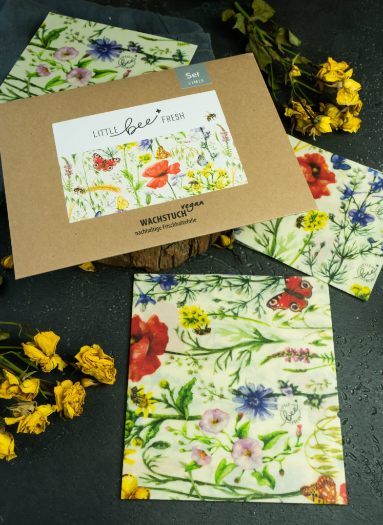 Das Set mit veganen Wachstüchern von LITTLE BEE FRESH ist perfekt als Geschenk für deine Liebsten geeignet! Es beinhaltet drei vegane Wachstücher (klein, mittel und groß). Die wiederverwendbaren Tücher sind super nachhaltige Alternativen zu Alu- oder Frischhaltefolie. Sie sind handgefertigt, bestehen aus Bio-Baumwolle, pestizidfreiem, regionalen Pflanzen-Wachs, Bio-Jojobaöl und Baumharz. Sie halten deine Lebensmittel lange frisch und bieten optimalen Schutz, da sie luftdurchlässig sind. Das schöne Blumenmuster macht sie auch optisch zu einem richtigen Hingucker. Das Produkt und die Verpackung sind zu 100% plastikfrei. Außerdem lassen sie sich einfach reinigen: Mit kaltem Wasser und etwas mildem Spülmittel, dann einfach lufttrocknen lassen, z. B. über der Wäscheleine. Das Set kostet derzeit 27,20€.