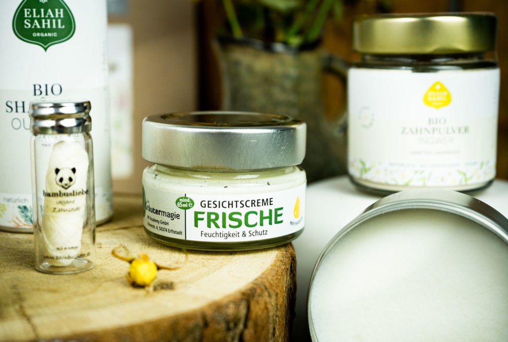Übrigens: Alle Produkte von Eliah Sahil kommen ohne Einmal-Verpackungen aus. Jeder Behälter ist zu 100% recyclebar oder biologisch abbaubar. Dank dem innovativem Nachfüllkonzept können etwa die Pulvershampoo-Behälter ganz bequem wiederverwendet werden. Auf handelsübliche Etiketten wird vollständig verzichtet – verwendet werden stattdessen innovative Steinmehletiketten. Diese benötigen in der Herstellung 80 % weniger Wasser und kein Holz.