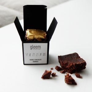 Die Rawnies von Gleem sind die gesunde Brownie-Alternative in Rohkostqualität. Die natürliche Süße entsteht allein durch frische Datteln. Definitiv ein veganes Luxusprodukt, welches mit 22 Karat Blattgold veredelt wird.