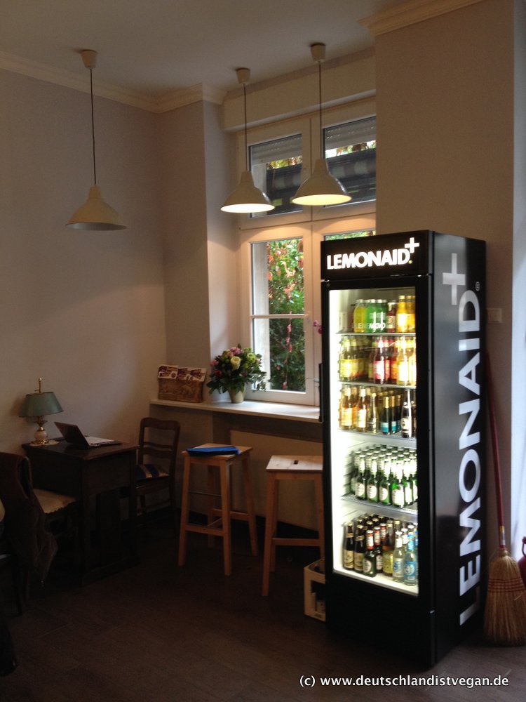 Vom tollen Ambiente alleine kann so ein Café natürlich nicht überleben, um so besser, dass das „no milk today“ auch richtig gutes Essen zu bieten hat. Besonders die Kuchenvariationen und Cookies haben mich begeistert, zumal das alles in der Regel hausgemacht ist. Für den deftigeren Hunger gibt es aber auch zum Beispiel Suppen und Stullen – immer alles mit einer Extraportion Kreativität versehen. Auch das Getränkeangebot lässt sich sehen. Neben dem leckeren Kaffee von den Berlinern Trés Cabezas in allen Varianten bekommt ihr Smoothies, Lassis, Limos und vieles mehr – alles möglichst bio und fair, nicht nur bei den Getränken im übrigen. Für Freunde eines leckeren Biers oder Weins (wie mich) ist glücklicherweise auch gesorgt.