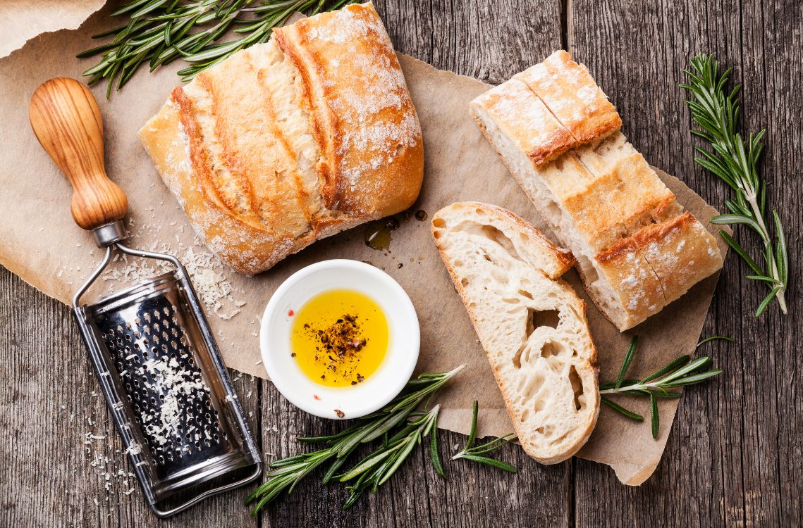 - Olivenöl, abgetropften Sojajoghurt, Pflanzendrink und Sojamehl verrühren. Mehl und Backpulver mischen und mit den Kräutern, Salz und den Hefeflocken zu einem zähen Teig verrühren.