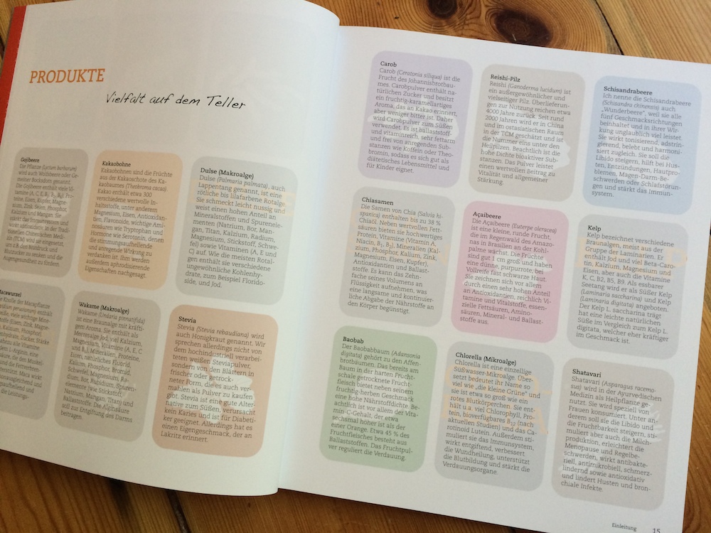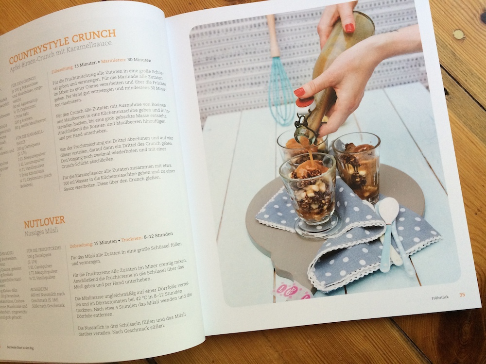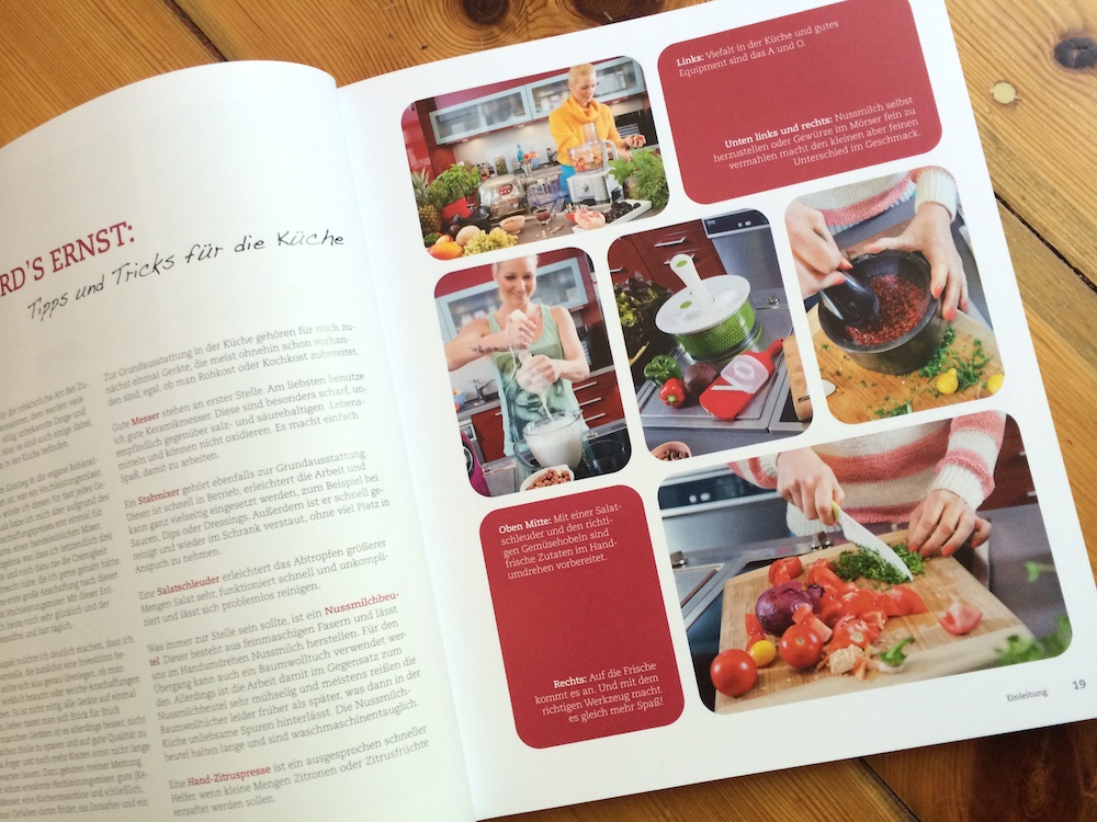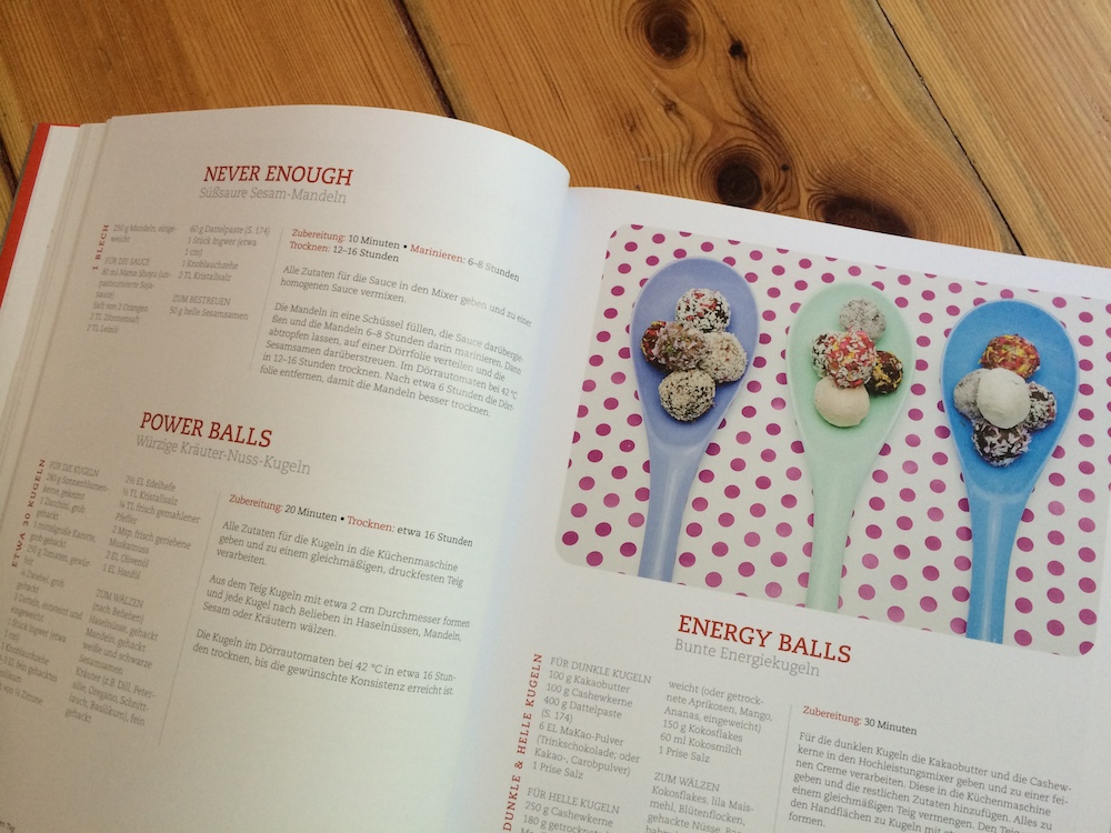 In dem schön gestalteten Buch findet ihr eine tolle Auswahl an Rohkost-Rezepten für Frühstück, Snacks, Smoothies, Hauptgerichte, Naschkatzen und einige Grundrezepte. Dazu gibt es viele Infos zu den Vorteilen von Rohkost, Lebensmitteln, Superfoods und weitere Tipps und Tricks. Die Rezepte sind toll bebildert und übersichtlich dargestellt. Schnell sieht man beim Durchblättern, dass Rohkost alles andere als Salat bedeutet, es ist faszinierend, wie abwechslungsreich ein rohköstlicher Speiseplan sein kann. Einige Gerichte sind schnell und ohne große Vorbereitung hinzubekommen, andere sind durchaus aufwändiger, und oftmals müsst ihr das Einweichen von Nüssen oder Hülsenfrüchten mit einplanen.