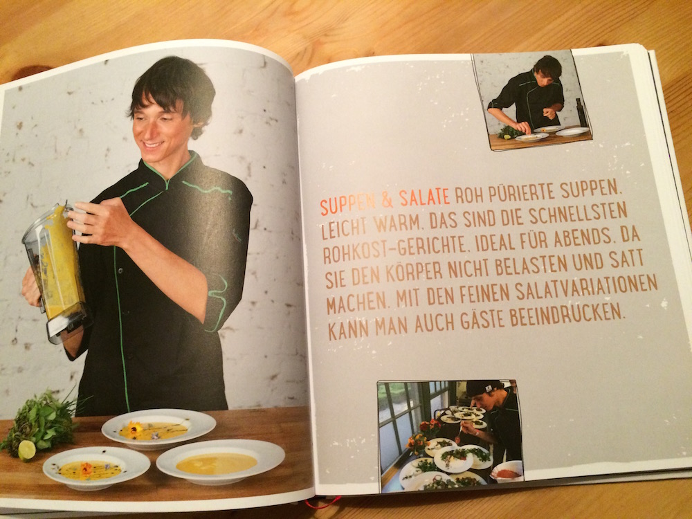 Ich bin ein Mensch, dem die Gestaltung eines Produktes – so auch eines Buches – wirklich wichtig ist. „Go raw be alive“ ist in dieser Hinsicht schon mal ein Volltreffer. Ich habe selten ein ähnlich schön gestaltes Buch gesehen wie dieses. Die Kombination aus Text, Hintergründen und Illustrationen ist wirklich großartig gelungen. Die Foodfotos sind ebenso wie die Porträts von Boris auf gleich hohem Niveau. Die Rezepteseiten sind gut übersichtlich gestaltet, dazu gibt es viele „In the making“-Fotos, wo man einzelne Arbeitsschritte im Rezept zusätzlich visualisiert bekommt. Für mich eine glatte 1.