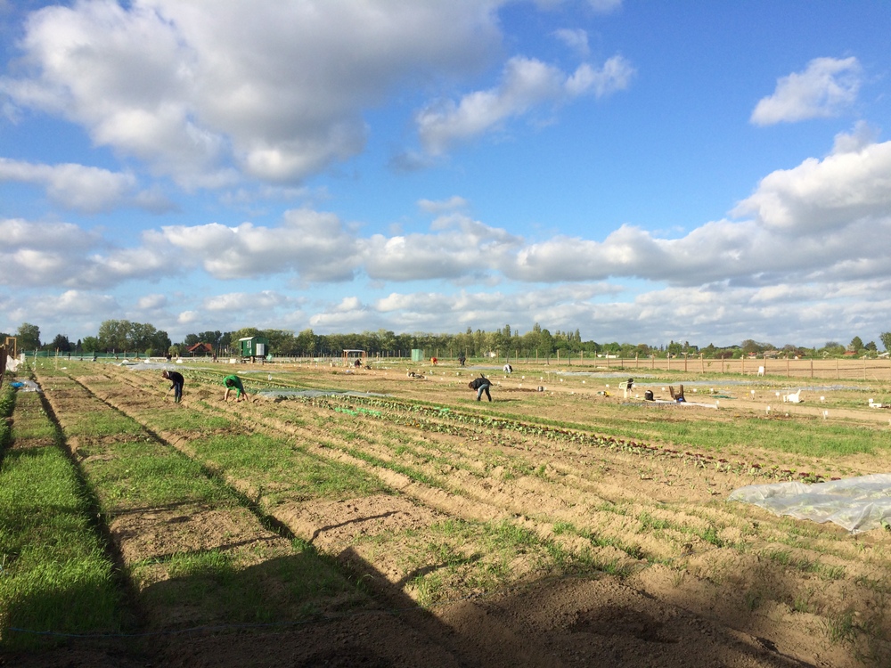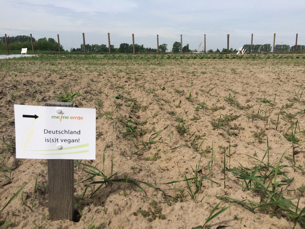 Das Konzept von Meine Ernte ist flott erklärt. Sie pachten ein Feld, der Bauer (dem das Feld gehört), macht die erste Aussaat, und dann rücken die Städter an zum buddeln, gießen, jäten, ernten und nachpflanzen. Damit das ganze auch klappt, sorgt Meine Ernte mit Gärtnerbriefen, Workshops und Gärtnersprechstunden für viel Fachwissen und hilft damit uns ungeübten Hobby-Gärtnern auf die Sprünge. Damit man nicht erst mal den halben Baumarkt leer kaufen muss, gibt es ausserdem die ganze Infrastruktur vor Ort gestellt. In der Mitte des Feldes steht ein Bauwagen, und in dem findet man alles an Werkzeug, was man benötigt. Außerdem natürlich Wasserstellen. Man kauft sich also nur noch ein paar Gummistiefel und Handschuhe, und es kann los gehen. Ach so, vorher gilt es natürlich, sich einen Streifen des Feldes zu sichern, und hier bietet Meine Ernte zwei Größen an, je nach Haushaltsmitgliederzahl.