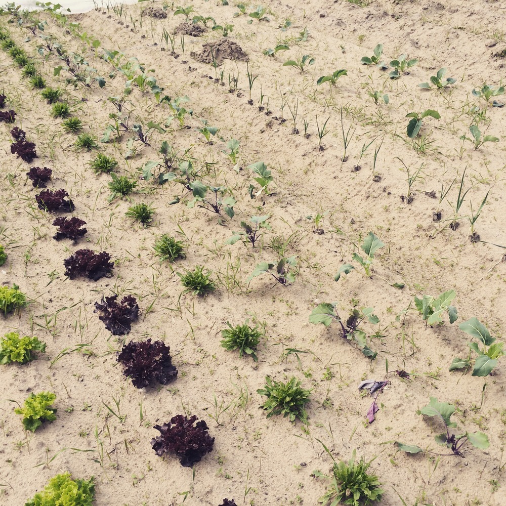 Ungefähr 20 Gemüsesorten werden für den Anfang gesät, und kleine Schildchen an einem Musterstreifen zeigen, wie das eigene Feld bestenfalls gerade aussehen soll. Man wird nämlich ganz schnell merken, dass das ganze doch gar nicht so einfach ist, wie man vielleicht denken mag. Besonders am Anfang fragst du dich ständig: „Ist das Gemüse oder kann das weg?“. Es gilt also, sich hier ein wenig schlau zu machen, aber auch dabei hilft Meine Ernte, u.a. auch mit nett gemachten Videos. Überhaupt supergut, was man an zusätzlichen Infos von den Machern regelmäßig bekommt, z.B. Kräutermischungen selber machen oder gar zu Kartoffeldruck. Gefällt mir richtig gut, was die Leute von Meine Ernte auf die Beine gestellt haben.