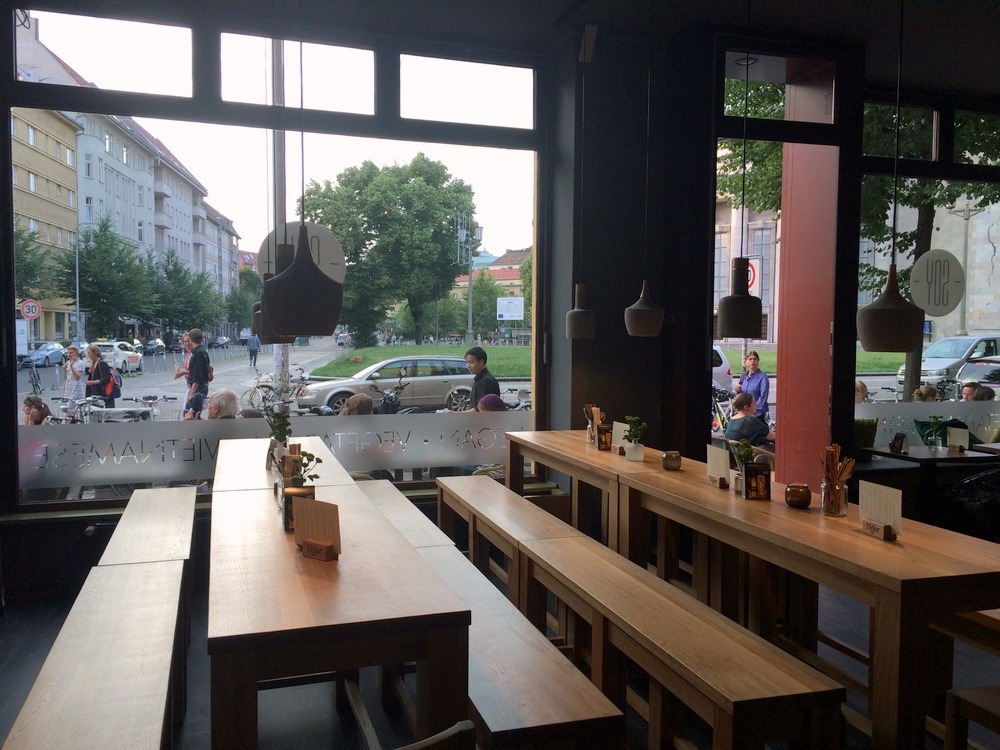 Berlin ist um ein richtig tolles Restaurant reicher geworden, denn vor einem Monat hat das vietnamesische Restaurant „Soy“ eröffnet. Nun gibt es zwar gerade in Berlin eine unglaublich hohe Zahl an vietnamesischen Restaurants, aber solche, in denen man bedenklos vegan essen gehen kann, sind noch sehr rar. In vielen vietnamesischen Imbissen und Restaurants wird die Kokosmilch mit Kuhmilch gestreckt, ist Fischsauce mit drin oder wurde die Brühe mit Knochen angesetzt. Wer im Soy essen geht, kann da völlig beruhigt sein, denn hier ist (fast) alles vegan. Es gibt ganz wenige Ausnahmen, wo aber die total sympathische Betreiberin Lien gerade überlegt, auch diese von der Probekarte, die es zur Zeit noch gibt, zu streichen. Wer darauf hinweist, dass alles vegan sein soll, ist hier auf jeden Fall schon mal auf der sicheren Seite und wird nicht mit fragendem Blick angesehen.