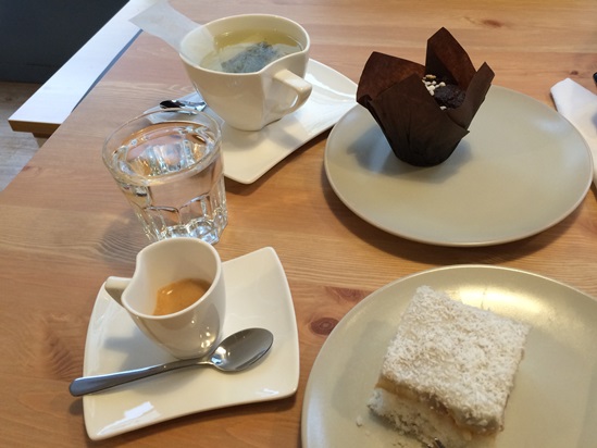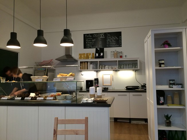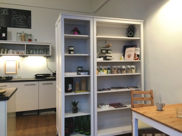 Die Kaffeespezialitäten werden mit fair gehandeltem Kaffee, und falls gewünscht mit Bio-Reismilch, zubereitet. Die Bio-Teesorten schmecken extrem fein. Da finde ich es als „Sehr-viel-Teetrinkerin“ etwas schade, dass die Tassen nicht größer sind oder der Tee nicht in kleinen Kannen serviert wird.