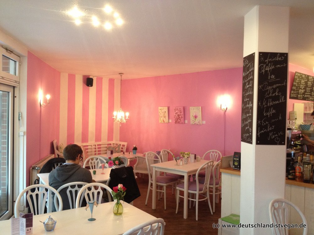 Die Betreiberin ist total nett, das Ambiente ist liebevoll gestaltet, und bei guten Wetter kann man wunderbar draußen sitzen. Man sollte es allerdings auch pink mögen ;-). Fazit: Ein sehr nettes Café mit wirklich gutem Angebot für Veganer_innen.