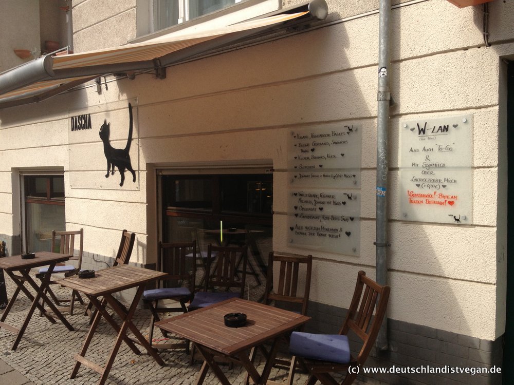 Wohnt man in Berlin, ist man ja so verwöhnt mit veganen Locations, dass man die eine oder andere auch mal ziemlich lang übersehen kann. So geschehen beim Café Dascha auf der Stargarder Straße in Berlin Prenzlauer Berg. Zwar ist das Dascha kein rein veganes Café, aber es gibt wirklich ein ordentliches Angebot an veganen Speisen, und die Besitzerin lebt entweder selbst vegan oder ist mindestens mal top informiert. Die Speisen sind außerdem stets gut erkennbar als vegan gekennzeichnet, wenn sie es denn sind.