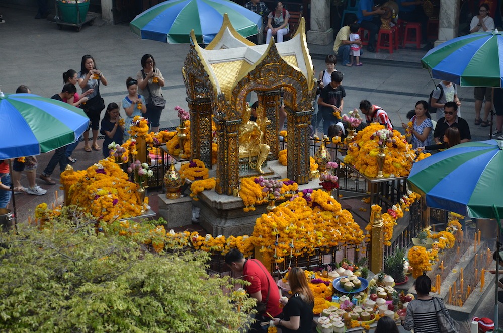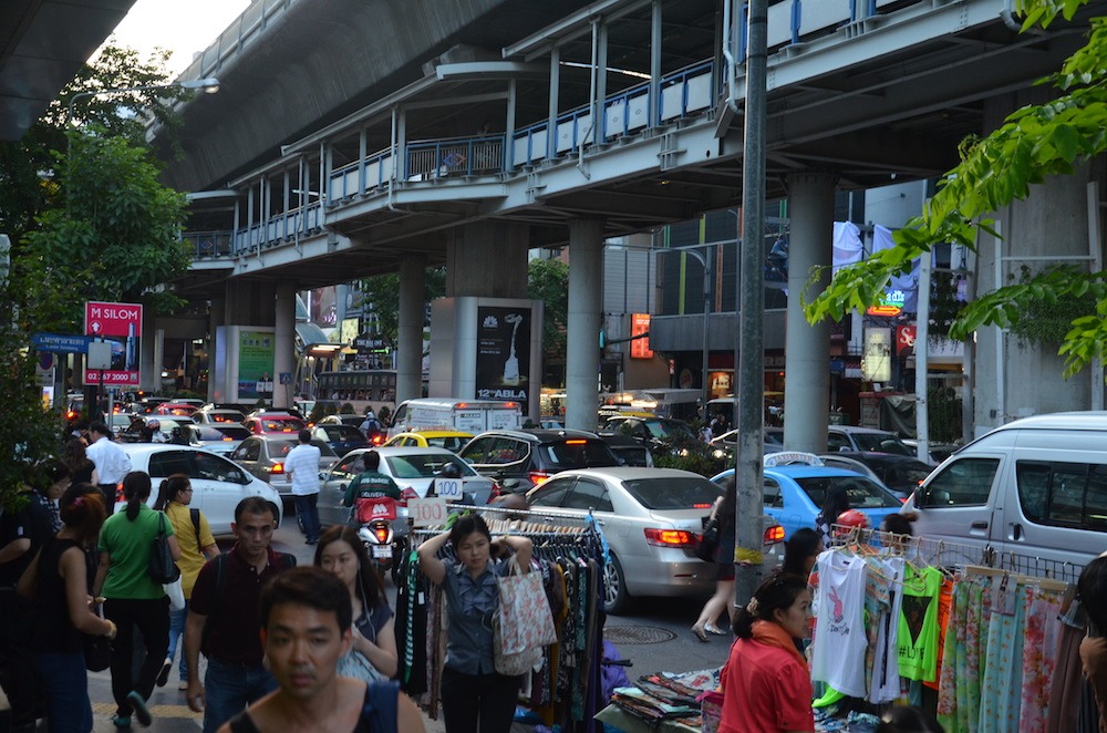 Da die Restaurants, die mir auf meinem unrecherchierten Weg begegnet sind, eher überteuert waren und keine veganen und meist auch nicht mal vegetarische Gerichte auf der Karte hatten, kann ich nur empfehlen, sein Mittagessen im Soi Ten Food Center (Soi 10, Th Silom) zu essen. Es ist brummig, es ist laut, ein bisschen wie Kantine auf Thai-Art, denn hier essen typischerweise die Büroangestellten des Viertels. Ein bisschen hartgesotten muss man zugegebenermaßen schon sein. Es ist unglaublich eng, getrocknete Fische werden neben High Heels verkauft und einen Stand weiter gibt es Klamotten und daneben irgendwas Frittiertes. Englische Speisekarten gibt es nicht. Man guckt, was nach „nur Gemüse“ aussieht und zeigt drauf. Ein Essen kostet in der Regel unter 50 THB. Zugegebenermaßen war ich an diesem Punkt so weit, dass ich nicht mal mehr nach Saucen fragen wollte. Geschmacklich bin ich positiv überrascht worden. Wer da isst, wo viele Einheimische essen, liegt schon mal nicht komplett daneben.
