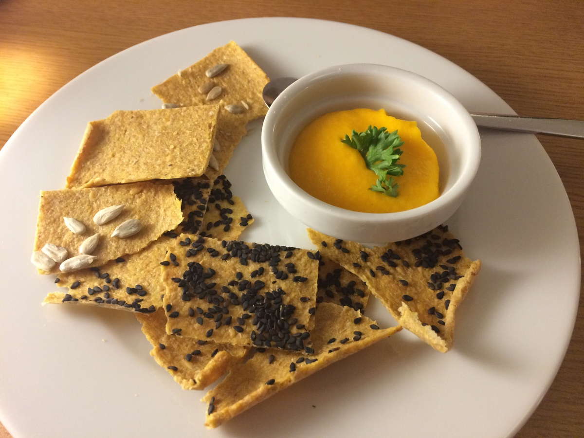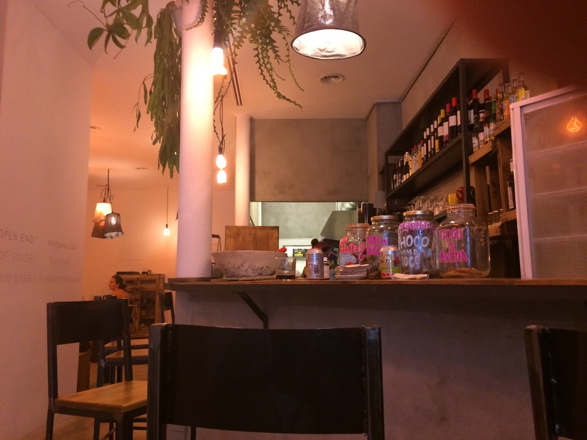 Die Betreiber des Flax and Kale haben ein weiteres Restaurant um die Ecke, das „Teresa Carles“, und das erfreut sich ähnlich großer Beliebtheit wie der Schwesternladen. Hier geht es allerdings rein vegetarisch zu, und die Preise sind ein klein wenig geringer. Generell möchte ich aber hinzufügen, dass sowohl im Flax and Kale als auch im Teresa Carles absolut nichts an den Preisen auszusetzen ist, und wer mittags zu Teresa Carles geht, kann sogar für 10 Euro ein Menü bekommen, eine Flasche (leckerer) Hauswein kostet gerade mal 11 Euro. Ein absolut großartiger Laden in jeder Hinsicht mit großem veganen Angebot, stylishem Ambiente, kreativem köstlichem Essen und superprofessionell. Allerdings lohnt eine Reservierung, denn ich bin nicht der einzige, der das mitbekommen hat.