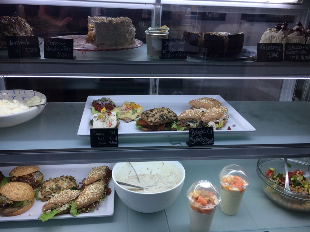 Wer in Kiel im hohen Norden unserer Republik weilt, hat keine riesige Auswahl an veganen Locations, aber es gibt ein paar Läden, die zumindest ein veganes Angebot haben. Dazu gehört das wirklich wunderschöne Mmhio, das sich selbst als vegetarische Bio-Kantine bezeichnet. 100% der eingesetzten Speisen sind bio, womit das Mmhio ein in Kiel einzigartiges Konzept hat. Angeboten wird ein wechselnder Mittagstisch mit je 3 Gerichten, fast immer sind 1 oder 2 vegan. Ansonsten gibt es viele Snacks, von denen so einige vegan sind. Netterweise sind die veganen Speisen auch klar deklariert, und das Angebot ist wirklich nicht schlecht.