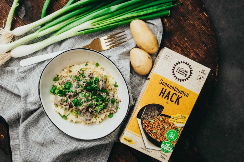 Ein ganz neues Produkt ist seit kurzem auf dem Markt: “Sonnenblumen-Hack“. Damit kannst du wunderbar vegane Bolognese, vegange Aufläufe oder zum Beispiel auch einen Veggie Burger anrichten. Wir haben das Produkt mal getestet und für euch eine klassische Bolognese nachgekocht. Fazit: Wir sind begeistert, schmeckt super, und das Sonnenblumen-Hack lässt sich hervorragend verarbeiten.