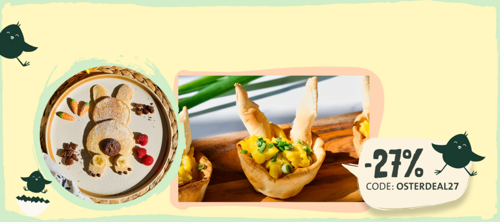 Und als ob das noch nicht genug wäre, erhältst du mit dem Oster-Deal sage und schreibe 27% Rabatt auf die Brunch Box. Einfach den Code  OSTERDEAL27  an der Kasse des Onlineshops einlösen und kräftig sparen. So steht dem gemütlichen Oster-Brunch nichts mehr im Wege!​