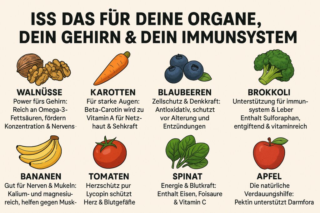 Deine Ernährung ist weit mehr als nur Energiequelle – sie ist die Grundlage für die Gesundheit deiner Organe. Was du täglich isst, kann beeinflussen, wie gut Herz, Leber, Darm, Gehirn und Co. funktionieren.