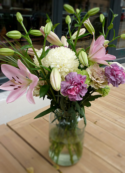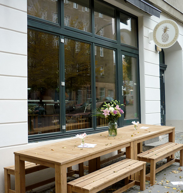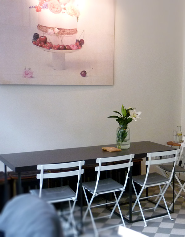 Gegründet wurde die Konditorei von Inés Arau Mussons, die aus Liebe zur Natur, zu den Tieren und ihrer eigenen Gesundheit vor vielen Jahren beschloss, nur noch vegan zu backen und kochen. Sie legt großen Wert auf biologische und vollwertige Zutaten und wünscht sich, dass ihre KundInnen ihr Geschäft nach dem Schlemmen mit einem wohligen Gefühl verlassen. Dass Inés Liebe nicht nur dem veganen Backen, sondern auch Design und Fotografie gilt, wird an vielen Details des Ladens sichtbar. Das große Bild über einem der Tische und den fantastischen Blumensschmuck hätte ich jedenfalls am liebsten gleich mitgenommen. Und für alle, die Inés Gebäck gerne nachmachen möchten, lohnt sich ein Blick auf ihre Internetseite – dort verrät sie nämlich einige ihrer Rezepte.