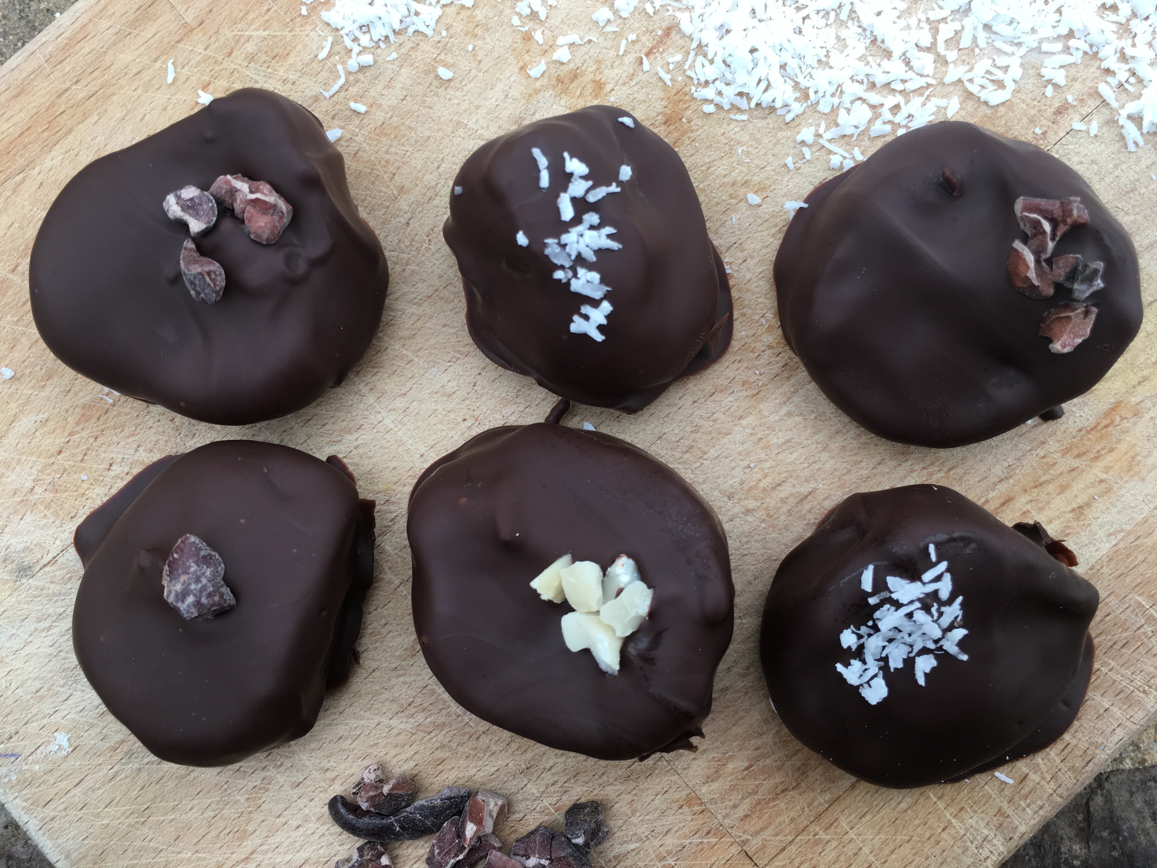 *Datteln und Nüsse nach Geschmack sind eine hervorragende Basis für vegane Pralinen oder rohe Brownies. Es gibt sehr viel Spielraum auch was das Topping und die Gewürze betrifft. Ausprobieren lohnt sich, ob Chili, roter Pfeffer, Cardamom, Sesam oder Zimt.