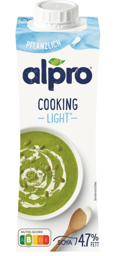 Alpro ist mittlerweile eine sehr bekannte Marke für pflanzliche Alternativen zu herkömmlichen Milchprodukten. Die Alpro Soja-Kochcrème Cuisine, Alpro Reis-Kochcrème Cuisine und Alpro Soja-Kochcrème Cuisine Light sind drei von den Sahnealternativen, die alpro anbietet. Dabei ist die light Variante fettreduziert. Alle Kochcremes eignen sich perfekt für herzhafte Speisen wie Suppen, Soßen, Gratins und andere Leckereien. 250ml kosten zwischen 99 Cent und 1,29€.