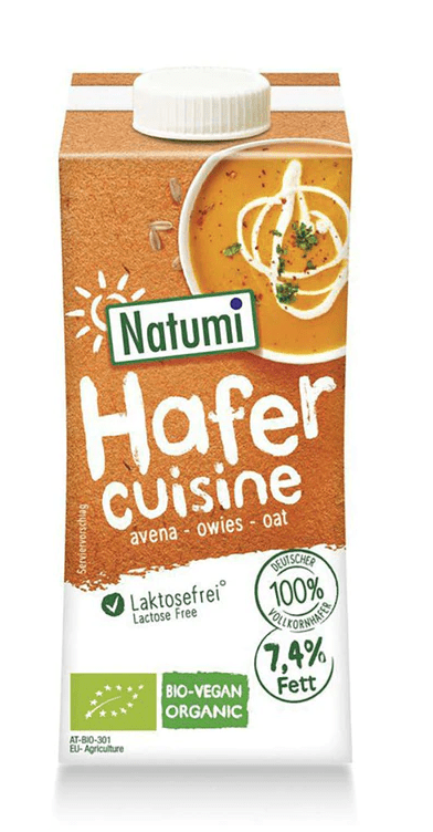 Natumi steht für pflanzliche und gesunde Milchalternativen in Bioqualität und hat drei verschiedene Sorten Sahneersatz im Sortiment, undzwar in den Sorten Hafer, Dinkel und Soja. Alle sind für herzhafte Speisen geeignet. Die Soja- und Dinkelvarianten haben auérdem einen hohen Gehalt an ungesättigten Fettsäuren. Die 200ml Packung bekommst du ab 1,09€.