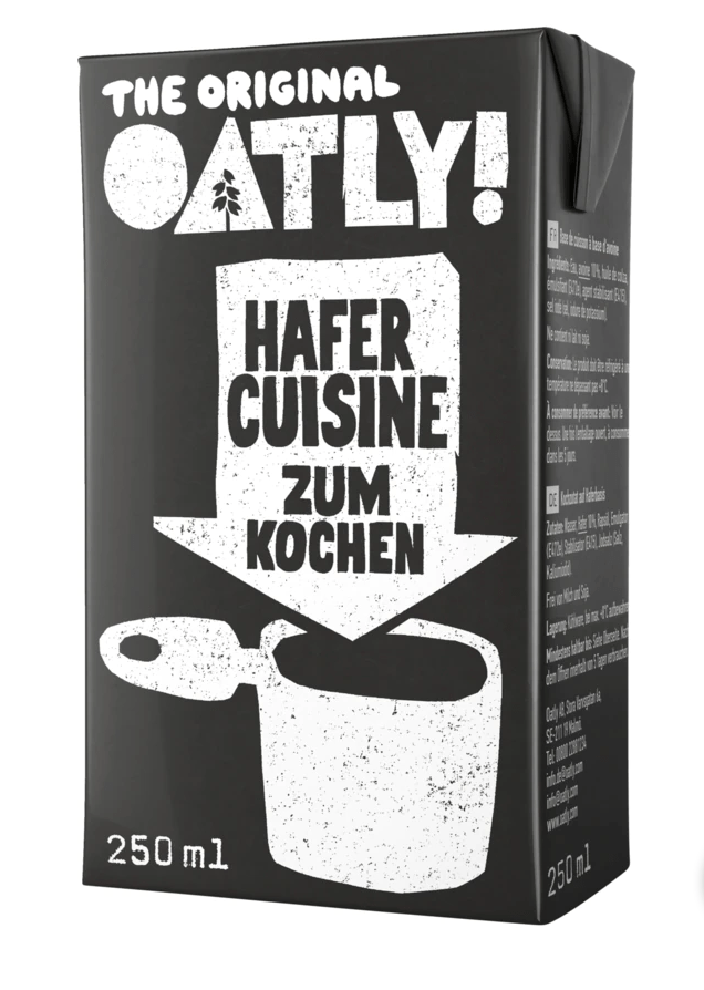 Auch von oatly gibt es natürlich vegane Sahnealternativen. Die Hafer Cuisine und Hafer Cuisine zum Kochen unterscheiden sich insofern dass die Variante in der brauen Verpackung biozertifiziert ist und die in der schwarzen Verpackung nicht. Beide kosten 1,29€ bei 250ml.