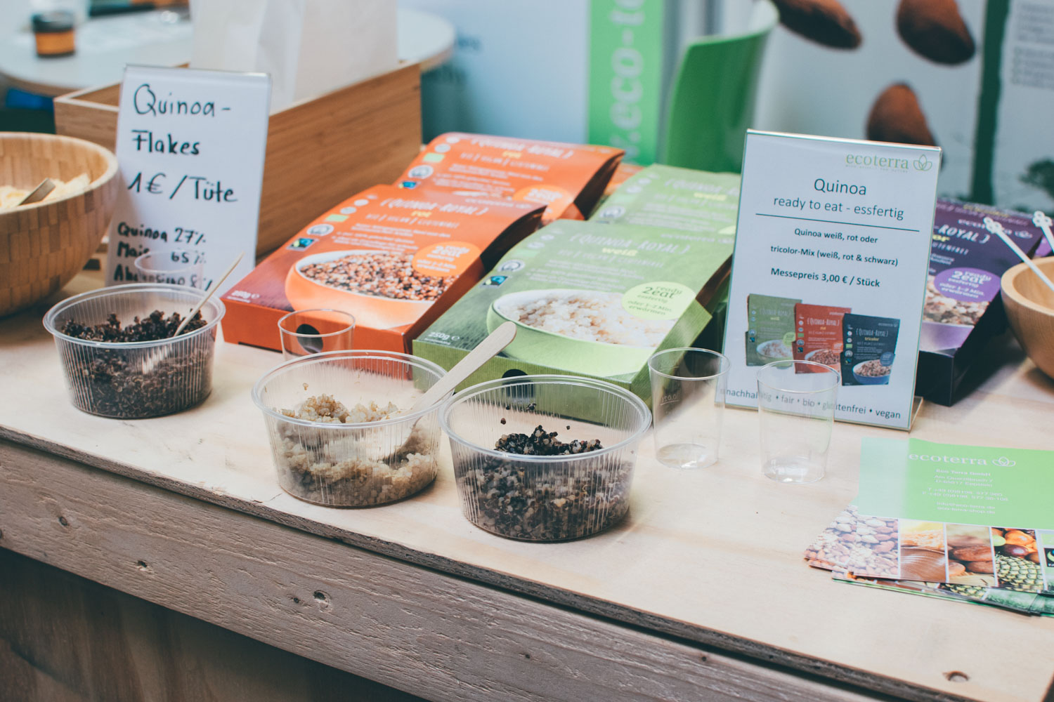 Viele Aussteller bieten Gratisproben an und erklären gerne im Detail Herkunft, Zusammensetzung und Wirkung ihrer Produkte. Außerdem können alle Produkte vor Ort natürlich direkt gekauft werden – und dies oft zu Messepreisen.