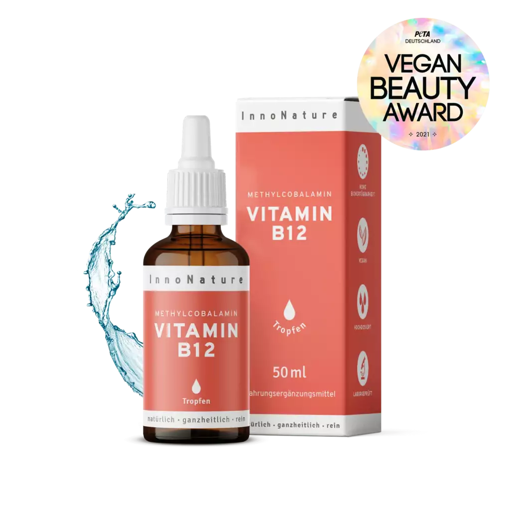 - InnoNature Methylcobalamin Vitamin B12 Tropfen – hochbioverfügbare, flüssige Form für schnelle Aufnahme und flexible Dosierung.