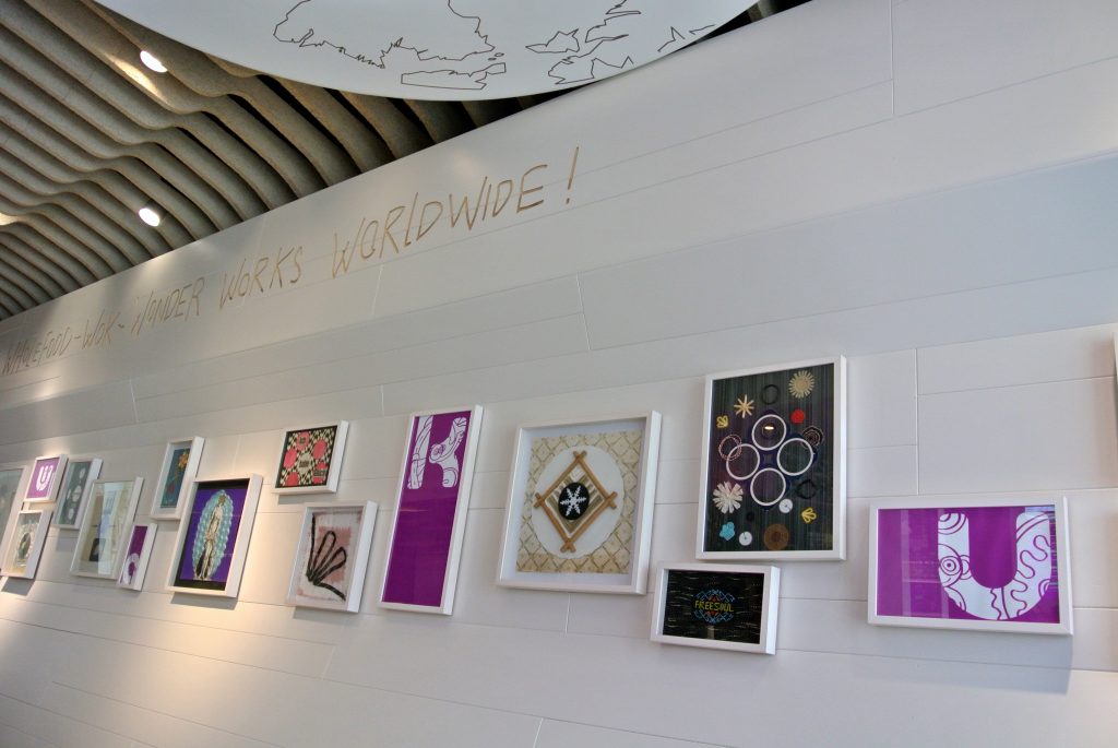 Besonders auf- und gefallend sind die sehr modernen Räumlichkeiten, hier vorrangig in Pink und Weiß gehalten, denn auch hier hat das Prinzip der Nachhaltigkeit Beachtung gefunden (Re-Use [z.B. Stühle], ressourcenschonende [Küchen-] Technik,…).