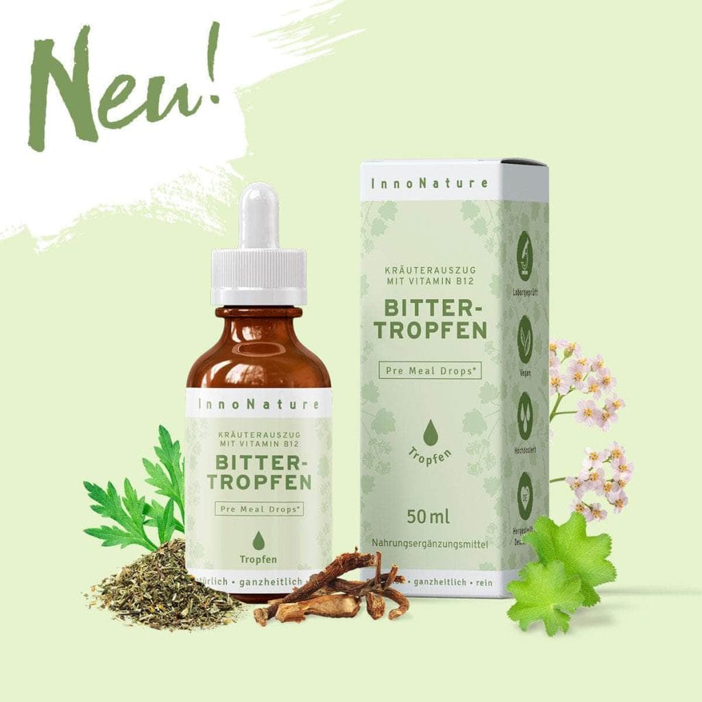 Insbesondere nach einem schweren Mittagessen wartet häufig das unangenehme Mittagstief. Die Bittertropfen InnoNature enthalten deshalb Vitamin B12, denn dieses trägt langfristig zur Verringerung von Müdigkeit bei. Die Tropfen sind frei von überflüssigen Zusatzstoffen und Zutaten. Frei von Gluten, laktosefrei, ohne Zuckerzusätze, keine Farbstoffe, ohne Zusatz von Aromen, kein Magnesiumstearat und ohne Gentechnik.