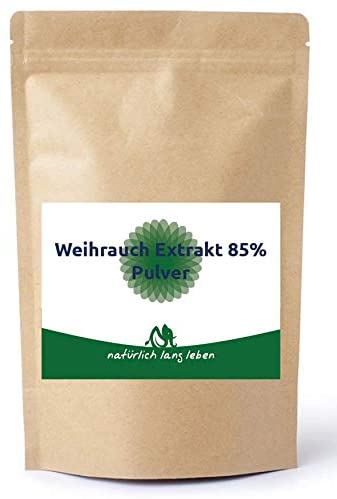 Mit dem Weihrauchpulver von natürlich lang leben kannst du deinem Körper etwas Gutes tun. Es ist einfach zu dosieren und lässt sich am besten unter Joghurt oder in Müslis rühren. Es ist nicht wasserlöslich, da Weihrauch ja ein Harz ist. Das Pulver enthält 85% Boswellia Säuren und ist selbstverständlich frei von unnötigen Zusätzen und Hilfsmitteln. Du solltest täglich 800 mg (1 Messlöffel) einnehmen. Der Preis liegt bei 29,00€ für 100g.